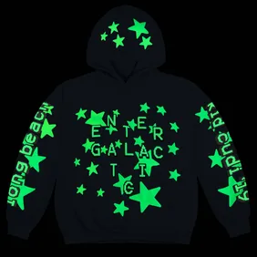 He has teamed up with Cactus Flea Plant Market once again to design a hoodie that is exclusively available through his web store for 48 hours. The pigment-dyed garment features the title of his forthcoming album on the front, lyrics from it on the back and glow-in-the-dark stars puff-printed all over it. It costs $150 and will ship within 4-5 weeks. Cudi's last collaboration with CFPM was for a few items for his 2016 album, Passion, Pain and Demon Slayin'.