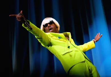 In front of a silver glitter curtain, Tyler flails around the stage dressed as his Igor persona, donning a powder blue suit (with no shirt underneath) and a bleached blond bowl cut wig. Tyler is always one to try to execute a specific vision he has in mind and you can tell by the way this concert is shot that it was meant to conform to his direction. There's a grainy, blue-tinged aesthetic and weird camera angles that make the video a fascinating watch. He also pauses several times between songs to provide his fans with some backstory regarding how the songs came to be. For example, he shares that "EARFQUAKE" was birthed out of his desire to write pop songs, and he ended up keeping it for his record after both Justin Bieber and Rihanna turned it down.