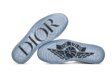 The kicks come equipped with a white and grey leather colorway highlighted by a subtle Dior print all over the tongue and a black Dior print on the Nike swoosh. The shoes also come equipped with grey laces, "Air Dior" branding on the wings logo and tongue, an icy blue outsole and a chrome hang tags.