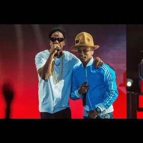 He brought out T.I. to perform “Blurred Lines," Pusha T for the Clipse classic, “Grindin',” Usher for “U Don’t Have To Call” and finally, Jay Z showed up for “Frontin’,” “Excuse Me Miss,” “La La La (Exuse Me Miss Again),” and “I Just Wanna Love U (Give it 2 Me).” Assembling four high profile stars from the Hip-Hop and R&B worlds, Pharrell may have even topped his set from last weekend, which saw Snoop Dogg, Nelly, Tyler The Creator, Diddy, Busta Rhymes and Gwen Stefani joining him onstage.