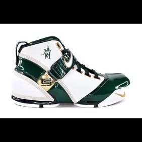 Patent leather is the key to this shoe's success. Some of the best colorways feature the flashy material on the strap that comes across the tongue, as well as the toe box. If there was one word to describe the shoe, it would be "luxurious." The silhouette is basic like the LeBron 2 and the LeBron 6 but the difference here is the details are much more pronounced. For those looking for a great example of this shoe's elegance, look at the Saint-Vincent-Saint Mary's model. The green and gold patent leather make for a gorgeous shoe that shines bright on the court.