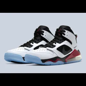 What's been interesting about this shoe is the number of colorways that have been released that mimic classic colorways from the past. The latest colorway to get the Jordan Mars 270 treatment is the "Fire Red" which is best known for its appearance on the classic Air Jordan 5. As you can see from the official images below, the entire shoe has a white leather upper while the bottom has black and red highlights. Meanwhile, an icy blue outsole brings the whole look together.