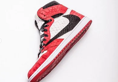 The kicks come equipped with premium leather and reptile detailing, highlighted by the familiar, backwards black Nike swoosh just as it appears on the Cactus Jack 1s. The customs were actually crafted from a regular Air Jordan 1 but The Shoe Surgeon perfectly replicates the design of La Flame's popular collab.