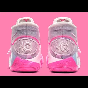 The Nike KD 12 "Aunt Pearl" features varying shades of pink throughout the silhouette, highlighted by a winged midfoot strap similar to the Nike KD 7 release. Additional details include a velvety soft tongue and sock liner, along with Aunt Pearl detailing on the tongue and insoles.