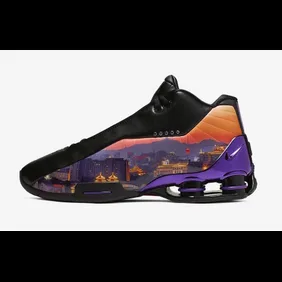 The special edition kicks, priced at $170, are constructed of a black leather upper, equipped with a skyline graphic complete with shades of purple and orange.