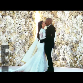We know you're probably quite full of the Kim and Kanye content at this point, but we've got a few more photos for you to digest should you so desire. E! News was granted some official wedding photographs from KimYe, which gives us a good look at Kim Kardashian's all-over lace Givenchy Haute Couture wedding dress, and we get to see Kanye and Kim with big smiles as they walk down the aisle, not to mention their "I Do" kiss. E! reports that a good friend who is a Pastor in Miami wed the two, and that they used traditional vows.