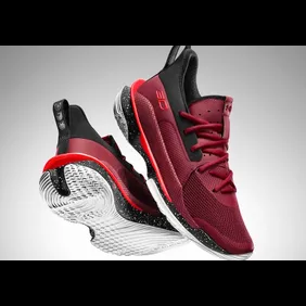 As you can see from the official images below, the sneaker has a burgundy upper with black accents up near the cuff. There is even a black and white speckled midsole which creates a nice bit of contrast. Overall, it's one of the best UA Curry 7 colorways we have seen thus far and will certainly make a great companion piece to the "Underrated Tour."