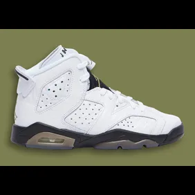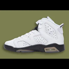 The shoe has black, gold, and brown details throughout the midsole, tongue, and back heel, while the rest is white. Some adults may enjoy this specific colorway but for now, it's looking like only the kids will be getting their hands on this one, which isn't exactly a bad thing. The Air Jordan 6 is a silhouette that rarely gets grade school, exclusive models. One thing to note here is that the premium materials aren't exactly flashy, despite what you may think. The leather is looking smooth and will certainly look great on-feet once pairs start making their way to store shelves.
