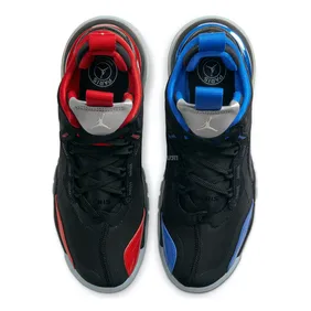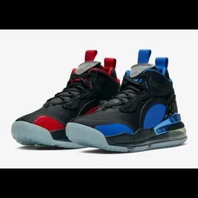 New colorways continue to be shown off and now, we have a fresh look at a Paris Saint-Germain model. For those who don't know. PSG is one of the best French soccer teams in the world and they have a rich history in European soccer. Jumpman has been doing a great job cultivating their relationship with PSG and we have gotten a ton of shoes because of it. This PSG version of the Aerospace 720 features mismatching shoes that pay homage to the French flag. As you can see, the left shoe is blue with a black base while the right show is red with a black base.