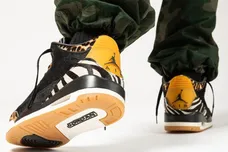 Similar to the first "Animal Instinct" Air Jordan 3, this upcoming colorway boasts a predominately black upper, highlighted by a crocodile print, along with a snakeskin detailing on the toe. In addition to the unique materials, the kicks are also accompanied by green, yellow and brown accents around the heel with a sail-colored midsole/outsole combination beneath the silhouette.