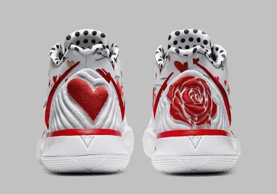As seen in the official images provided by Nike, the Sneaker Room x Nike Kyrie 5 "I Love You Mom" comes equipped with a white upper decorated with red and gold hearts throughout. The special edition sneakers are also highlighted by a black polka dot inner lining as well as heart and rose logos on the heel. Kyrie's "KI" logo on the tongue has been swapped out in favor of a similarly styled emblem that reads "MOM," and specially designed insoles complete the tribute.