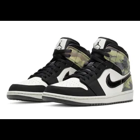 The latest Air Jordan 1 Mid colorway to be revealed is this Camo print model, below. As you can see, the toe box and side panels are made with white leather, with black overlays on top. From there, the back heel is made with the aforementioned camo print and it looks pretty great. Lastly, a black Nike swoosh and is placed on the side to round out the details.