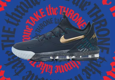 The Nike LeBron 16 Low "Agimat" comes equipped with a dark blue upper, highlighted by hits of gold on the Nike Swoosh and speckled midsole, as well as two special edition heel logos. According to Nike, the shield logo was inspired by the Bagobo tribe's traditional armor, while the lightning bolt symbolizes power.