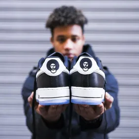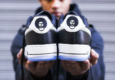 Kaepernick's Air Force 1 Low features a black leather upper equipped with a black-to-white gradient Nike swoosh, his logo on the tongue, a white midsole and any ice blue outsole beneath it all. Additionally, Kaep's image is stamped on the heel tab, and the date on the bottom of the sole - August 14, 2016 - serves as a nod to the first time that he took a knee in protest of police brutality.