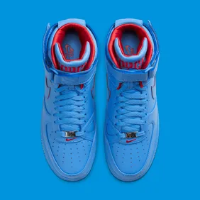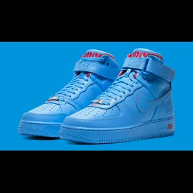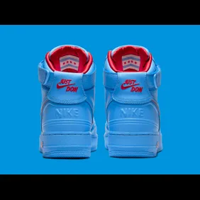 The shoe incorporates elements of the Air Force 1, 2, and 3 although, at first glance, the show resembles the Air Force 1 more than anything else. As for the leather upper, it is completely covered in a vibrant blue tone that is reminiscent of the blue found on the Chicago flag. Red "Force" branding is placed on the tongue while "Just Don" is written in red on the back heel. On the inside of the tongue, Don C placed the Chicago flag for everyone to see which ultimately ties together the motif going on here.