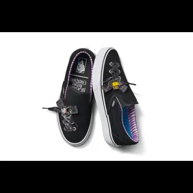 Included in the collection is a black suede Vans Sk8-Hi featuring purple detailing along with images of Sally, Zero and the Zombie Band, as well as a Vans Slip-On that nods to Jack's bowtie. The menacing trio Lock, Shock and Barrel are portrayed on a black, green and red colorway of the Vans Authentic, while the Vans Era comes equipped with a black & white collage of all the characters, including a subtle nod to the Easter bunny on the inner lining.