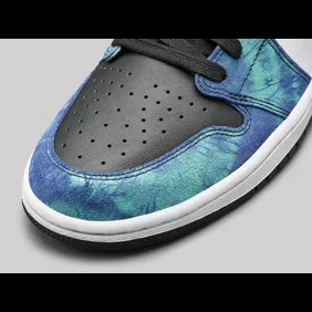 This is one of the more unique colorways we have seen as it features a black toe box and tongue, while the side panels are white. From there, the overlays are printed blue and green tie-dye. According to J23app, this is actually the first time a women's Air Jordan 1 High OG has received prints on the upper. This very fact makes this shoe a landmark for the brand.