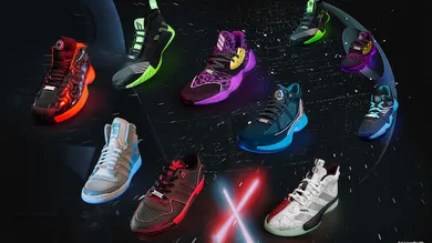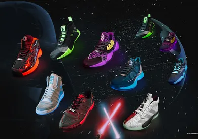 The Lightsaber pack features eight custom basketball iterations: The Harden Vol. 4 is designed with purple accents and pays homage to Mace Windu, while the Dame 5 takes inspiration from Luke Skywalker’s green lightsaber. Crazy 1 and Rivalry Lo designs shed light on Darth Vader and the dark side, while the classic Top Ten design is dedicated to the legendary Jedi hero, Obi-Wan Kenobi.