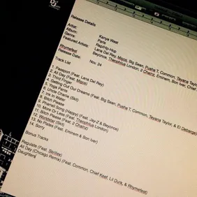 Reported by Billboard, this news puts a stymie on a tracklist that included Lana Del Rey, Migos, Big Sean, Pusha T, Common, Teyana Taylor, Jay Z, Beyonce and many more (the most astonishing guest list on a song was a "Chicago Remix" of "All Day" that had Chief Keef and Rhymefest on the same track). Apart from "wtf" tidbits like that in the tracklist, some upstarts on Twitter noted that Kanye doesn't do skits anymore and that this "tracklist" was on a Text Edit file (a very Un-Ye move).