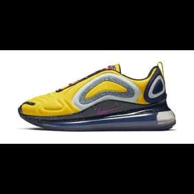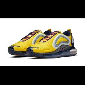 All of these elements make the Air Max 720 a perfect shoe for Undercover to collab on. As you can see from the images below, there are three colorways of the shoe including "Black/University Red," "University Red/Blue Jay," and "Yellow/Purple." All of these models have Undercover branding on the back heel and say the words "we make noise not clothes" on the side of the midsole.
