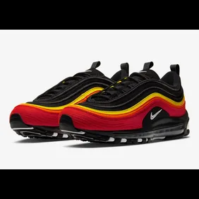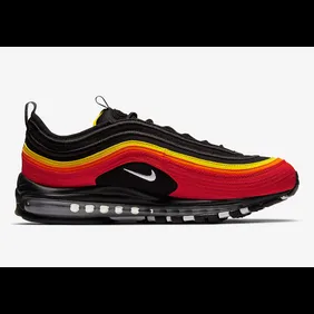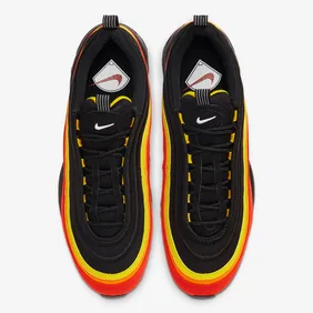 The first such sneaker is the Nike Air Max 97 which can be found below. As you can see from the official images, this sneaker is mostly black with yellow and orange rings going around the upper. On the insole, there is a baseball diamond with a Nike swoosh going through it. This little detail helps make this shoe stand out as an homage to baseball.