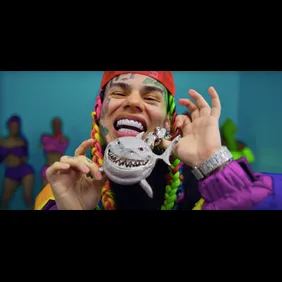 Bruce also appears as a painting on the wall in the visuals, as well as on 6ix9ine's yellow hoodie in some of the shots. Perhaps the Disney shark will serve as 6ix9ine's new mascot?