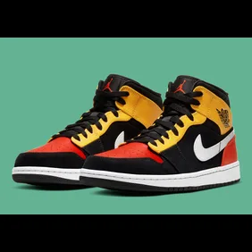 For the next Jordan 1 Mid colorway, Jumpman is drawing inspiration from the upcoming Nike SB Dunk Low "Raygun" models. As you can see from the official images below, the shoe has a dark orange toe box and back heel, while the overlays and cuff are yellow. From there, the side panels and tongue are black. Finishing off the shoe is a white Nike swoosh. Overall, it's a pretty clean colorway that will certainly be a hit amongst those looking for a cost-effective Air Jordan 1.