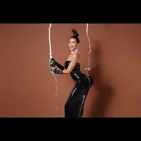 "There was some ass-related thing that was proposed but we weren’t sure what was going to happen," Boardman said. "We were really just planning on recreating the [famous] champagne shot…but she came in and was like, 'Let’s, you know, let’s just go there!' She and Jean-Paul just got into it with each other and got excited. She’s not shy about taking her clothes off, and the next thing [we knew], magic was happening."