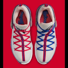 Today, the official images of the "Tune Squad" colorway were revealed to the masses. As you can see, the majority of the upper is white while red and blue highlights make their way throughout. The Nike swoosh even has fluffy grey textures to pay homage to the main character of Looney Tunes, Bugs Bunny.