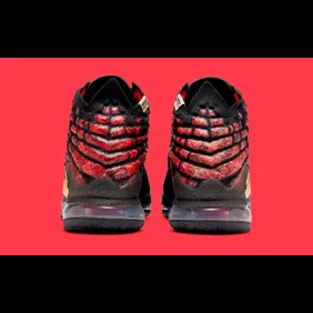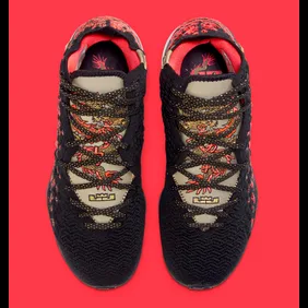 The latest colorway of the shoe is this "Courage" model which can be found below. As you can see, the base is mostly black with some red highlights found closer towards the back heel. Overall, it's an interesting model, especially since there is a dragon on the front. In fact, Chinese lettering is present, with words such as "courage" and "perseverance" being depicted. The shoe is packed with culture and appears to be one of the more unique LeBron 17s thus far.