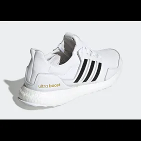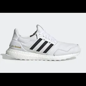 Now, Adidas is looking to pay homage to the Superstar by developing an UltraBoost that looks identical to it. Yes, that's right, Adidas has developed the UltraBoost "DNA" which has the exact same colorway as the original superstar. Unlike most UltraBoosts, this colorway is covered in white leather while black stripes are placed on the side. From there, the Adidas logo on the tongue is gold. Gold is also found on the "UltraBoost" branding near the heel cup.