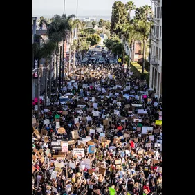 Demonstrators gathered at the popular block at 4 PM on June 7, bringing signs and peacefully marching down the street to send a message. The event, which was organized by YG, Black Lives Matter-L.A., and Build Power. The gathering was much larger than the one last week in Downtown Los Angeles, and you can clearly see that the action went on for blocks in YG's video.