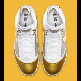 Nike recently revealed the official images and as you can see, they are completely staying true to the original. The upper is made with white materials while flashy metallic gold accents grace the toe box and Nike swoosh. Chinese text is placed on the side of the shoe which helps fit the aesthetic and theme of the sneaker. Overall, these elements come together to form a beautiful shoe that OG LeBron fans are going to want to rush to the store to cop.