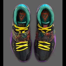 As you can see from the official images below, the sneaker has a black base although it is completely covered in vibrant colors. For instance, the Illuminati-inspired back heel is blue while the midsole is purple and the laces are yellow. The strap that goes across the upper contains multiple colors packaged in a nice pattern. Finally, the gold Nike swoosh is surrounded by an embroidery that will immediately make you think of tigers.