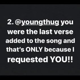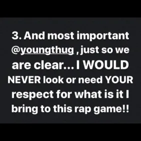 "2. @youngthug you were the last verse added to the song and that's ONLY because I requested YOU," he added. "And most important @youngthug, just so we are clear... I WOULD NEVER look or need YOUR respect for what it is I bring to this rap game."
