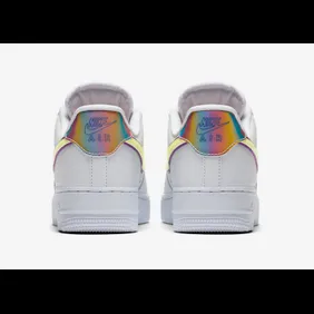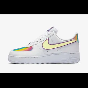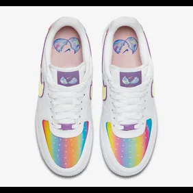 As you can see, the base of the sneaker is white while the rest of the shoe features pastel highlights. For instance, the Nike swoosh is yellow while a purple outline is placed around the logo. Purple is also found on the tongue which helps add some contrast. From there, the toe box and back heel are iridescent and feature a melange of colors. Overall, it's a dope colorway that represents the holiday to perfection.