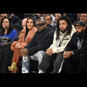Among all the high-profile guests at the NBA All-Star Game last night in Chicago, Illinois, one of the strangest appearances had to go to Kanye West and Kim Kardashian West being seated right next to J. Cole in the courtside area. The two rappers have never seemed to see eye-to-eye on things and, while there's certainly mutual respect, West's recent behavior has led the Dreamville head honcho to be critical of him in his music. Most notably, their differences were displayed on "False Prophets," a song which Cole has confirmed relates to Kanye partially. For some reason, the two rappers reunited on the sidelines this weekend and, when a photographer walked over to grab a few shots of them, nobody looked too pleased about the situation.