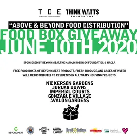 "Above and Beyond" will take place on Wednesday, June 10 in several key Watts locations. TDE will distribute thousands of food boxes from the Jordan Downs community to the Nickerson Gardens.
