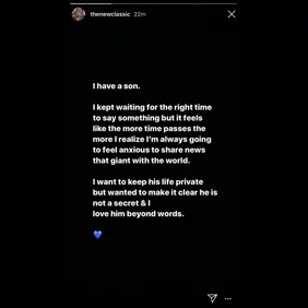"I have a son," she said on her Instagram Story. "I kept waiting for the right time to say something but it feels like the more time passes the more I realize I'm always going to feel anxious to share news this giant with the world."