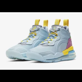 This year, Bennett's hometown of Chicago will be hosting the All-Star game and it seems as though Jordan Brand is taking advantage of this connection. Recently, images were revealed for a Lyrical Lemonade x Jordan Aerospace 720 collab. The shoe has the exact colors of the brand as light blue is placed on the upper and midsole. From there, yellow, green, and pink highlights are placed on the back. Lyrical Lemonade branding appears on the tongue as well as the insole. Overall, this is a super dope collab if you're familiar with Bennett's work.