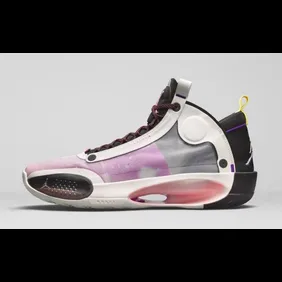 Each Air Jordan 34 features a unique heel logo and this particular colorway features an iridescent Jumpman logo on the left shoe, opposite Paris' '75' area code on the the right. The Air Jordan 34, billed as one of the lightest basketball shoes ever created by Jordan Brand (size 9 weighs just 13.1 oz), includes the following features:
