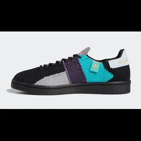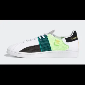 Now, Pharrell is looking to make a statement with a brand new version of the iconic Adidas Superstar. Official images of two new colorways dropped this week and as you can see, they carry forth Pharrell's eclectic style. On the first colorway which is white, yellow, and green, we see various different Primeknit patches that give a DIY vibe. This style is duplicated on the second offering which has a black base as well as burgundy cloth and turquoise-purple accents.