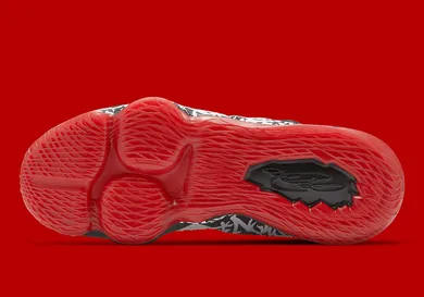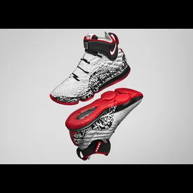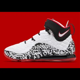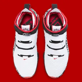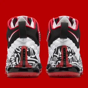 As you can see from the official images, this model stays true to the original as we have a white upper with black and red highlights. The cuff of the shoe has a strap around it and on the midfoot, there is some graffiti that helps the shoe live up to its own name. Overall, it's a nice piece of nostalgia that will have some significance to early LeBron fans.
