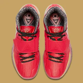 In addition to the red colorway, the Nike Kyrie 6 "Trophies" features a number of subtle details that tie into the Bulls' title run in 1996. For instance, the glossy patent leather detailing nods to the iconic Air Jordan 11 which Michael Jordan wore during that season, and the decorative sock liner mimics the carpet that was inside the Bulls locker room.
