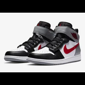 After dropping the first AJ 1 FlyEase back in October in a "Chicago" colorway, Jumpman is back with a brand new style that offers black, red and silver tones. As you can see from the images below, the shoe has a white toe box and side panels while the overlays are black and the back heel is silver. We even get some red on the Nike swoosh which adds a nice bit of contrast.