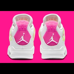 As you can see from the official images above, the shoe starts out with a white leather upper, while yellow is placed on the toe box, lace cage, and tongue. From there, we are greeted with some neon pink highlights on the back heel, side mesh, and even the Jumpman logo. These shades come together to create an extremely loud colorway that will certainly have people's eyes on your feet.