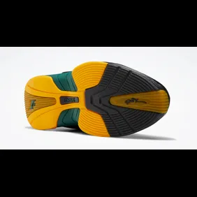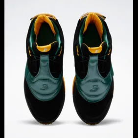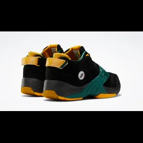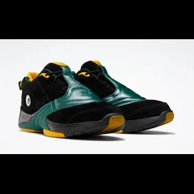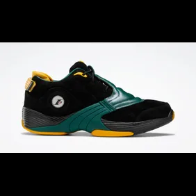 As you can see in the images below, this is an alternate colorway that matches his school's uniform, perfectly. The upper is covered in black suede while yellow and green highlights maker their ray throughout. "I3" branding can be found on the side panels as well as the toe strap. Overall, it's the Reebok Answer V we all know and love, with some history thrown into the mix. If you go to Bethel High or you're a big fan of Iverson, these are definitely worth checking out.