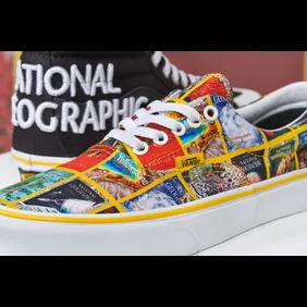 As you can see from the images below, the shoes on display are a pair of Old Skool's, Era's, Authentic's, Slip-On's, and Sk8-Hi's. Each pair has a pattern reminiscent of either National Geographic's logo, or some of its most iconic covers. If you're someone who likes to collect the physical magazines, then this capsule is most certainly for you.