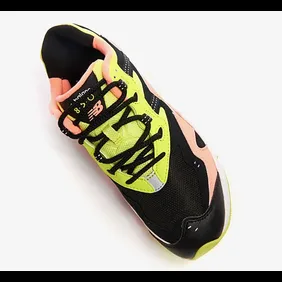 The New Balance 997 Sport ($100) is the least colorful of the bunch, coming equipped with a predominately black build throughout the mesh and leather construction. Peach detailing appears on the toe while yellow handles the branding, inner lining and heel portion of the outsole. Lastly, the New Balance 850 ($110) consists of black, peach and volt yellow spread out fairly evenly atop a white midsole.
