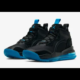 The latest offering is the "Blue Fury" model which can be seen below. The shoe has an all-over black upper while a vibrant blue is found on the midsole, Jumpman logo on the tongue, and the tab on top of the tongue. This shade of blue provides a punchy contrast to the rest of the sneaker. Overall, this is one of the cleanest Jordan Aerospace 720 colorways to date as we love what the brand is doing with none numbered Air Jordan models.
